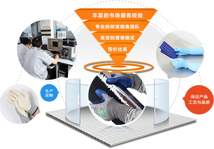 手套芯采用凱夫拉材質(zhì),經(jīng)權(quán)威機構(gòu)檢測屬于5級防割標準,針織采用無縫針織,針織密度高,防止硅粉及金屬碎屑進入手背,手掌涂層采用壓紋設計,具有良好的減震功能,手套制作完成以后經(jīng)過6次清洗工藝處理,經(jīng)權(quán)威機構(gòu)檢測表金屬雜質(zhì)低于45PPBW.